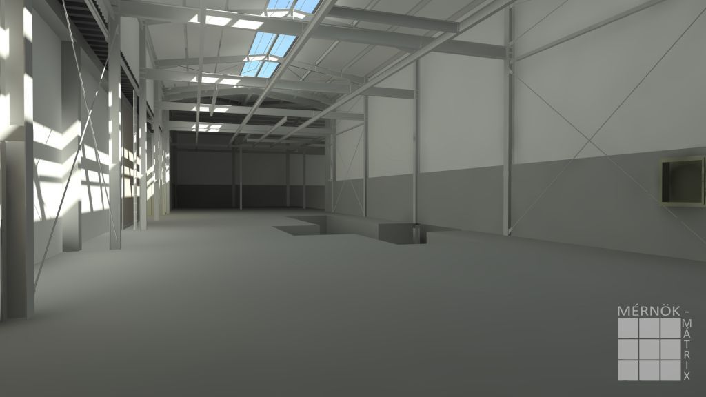 L-alakú acél szerkezetű üzemcsarnok engedélyezési és kiviteli tervezése sűrűn beépített ipari övezetben