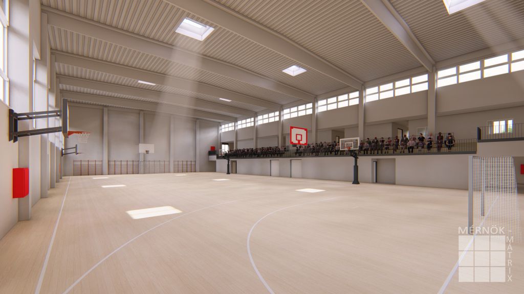 Általános iskolai épület infrastrukturális fejlesztése során meglévő épület részleges felújításának tervezése, és tornacsarnokkal való bővítésének engedélyezési és kiviteli tervezése.